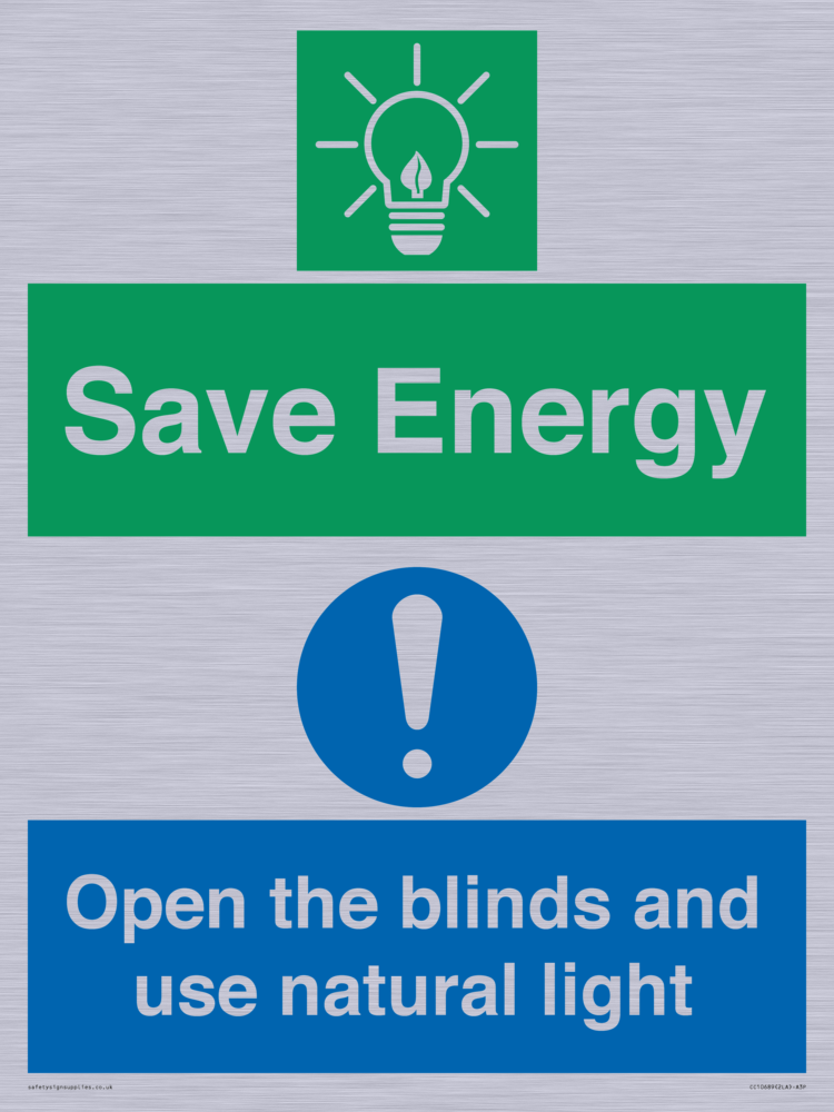 Save Energy open the blinds and use natural light Sign