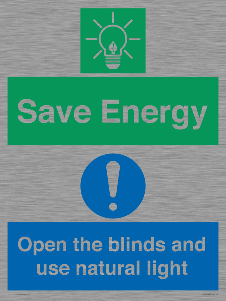 Save Energy open the blinds and use natural light Sign