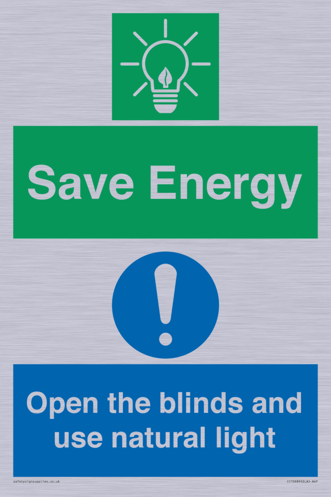 Save Energy open the blinds and use natural light Sign