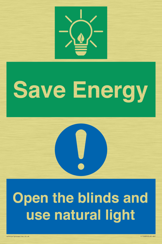 Save Energy open the blinds and use natural light Sign