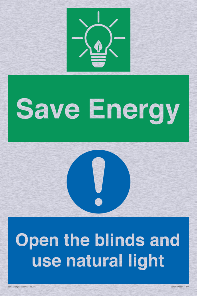 Save Energy open the blinds and use natural light Sign