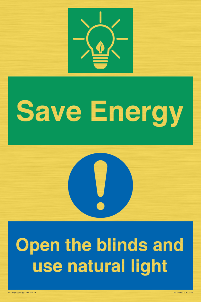 Save Energy open the blinds and use natural light Sign