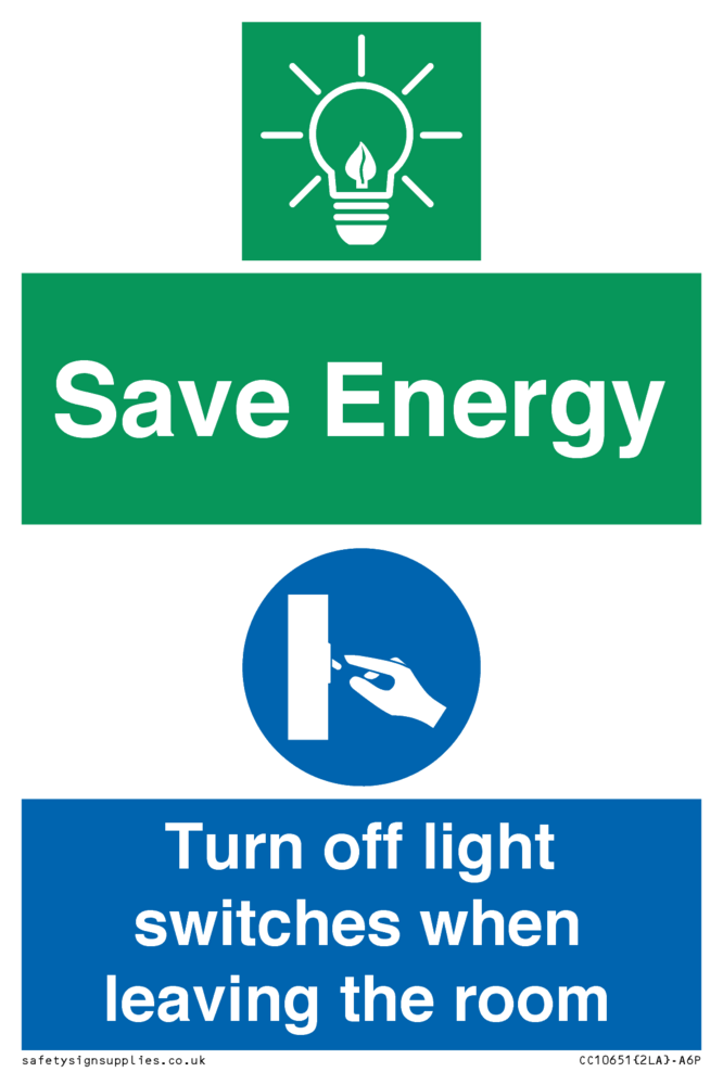 Save Energy - Turn off light switches when leaving the room
