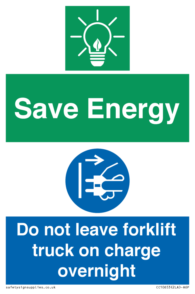 Save Energy - Do not leave forklift truck on charge overnight Sign