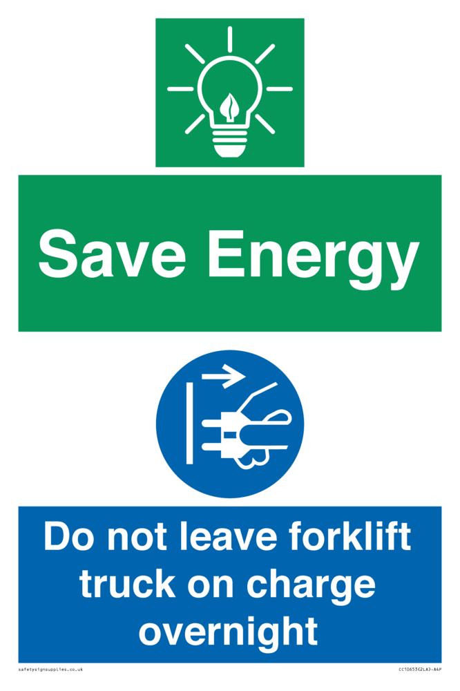 Save Energy - Do not leave forklift truck on charge overnight Sign