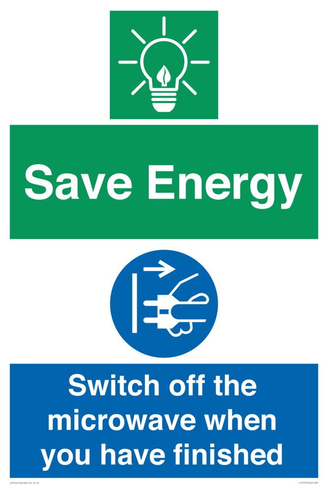 Save energy. Switch off the microwave when you have finished Sign