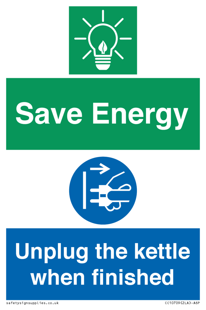 Save Energy, Unplug the kettle when finished Sign
