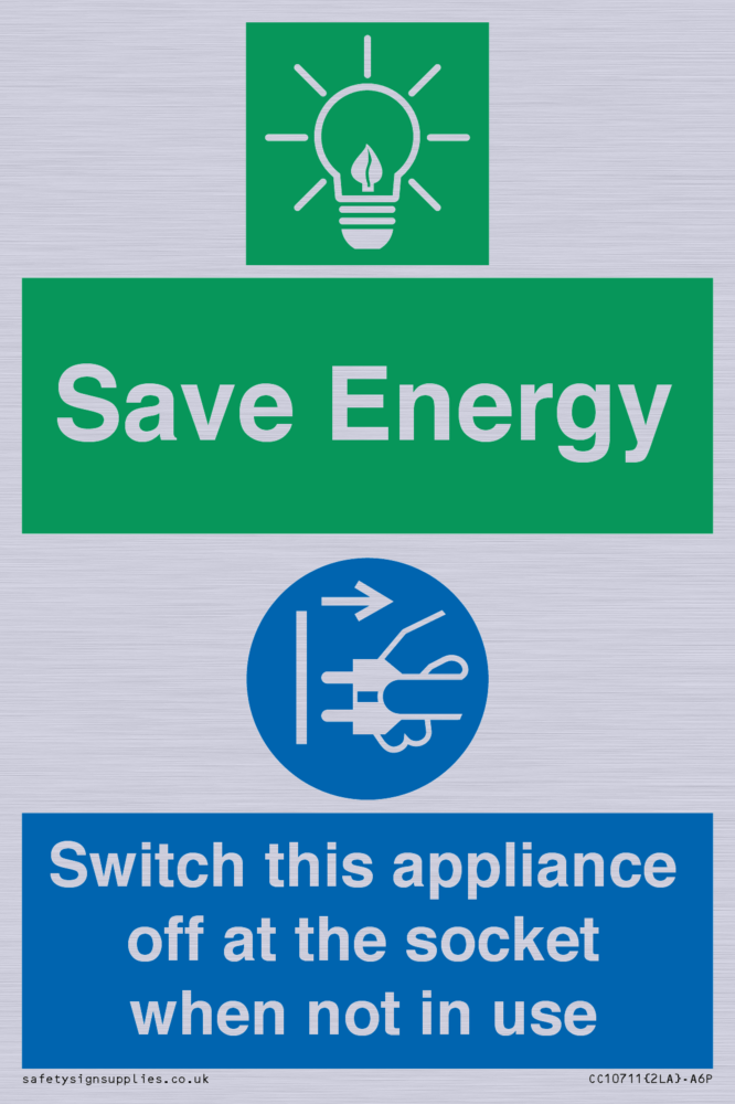 Save Energy, Switch this appliance off at the socket when not in use Sign