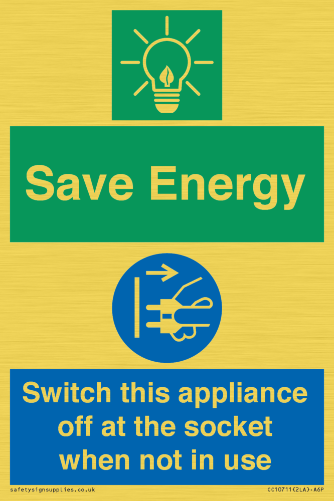 Save Energy, Switch this appliance off at the socket when not in use Sign