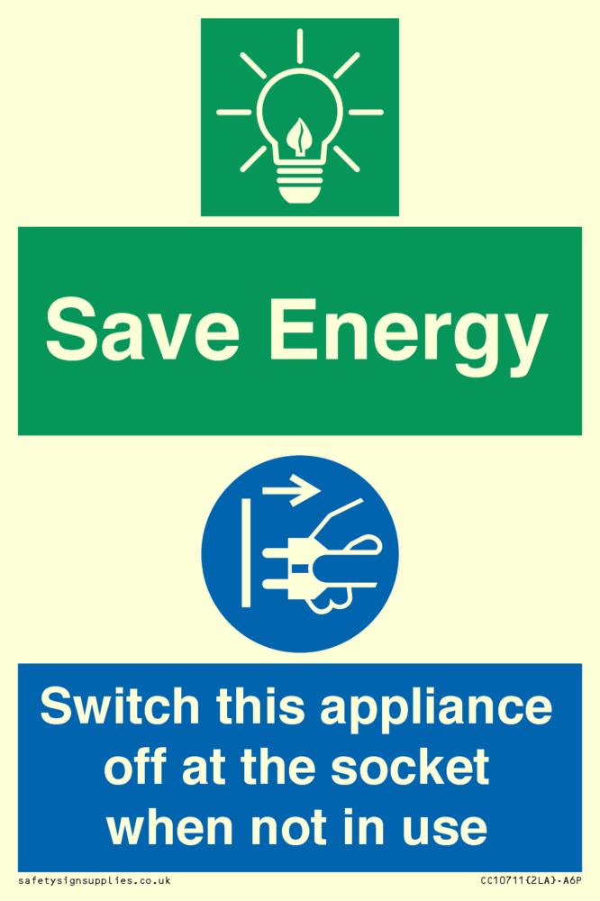 Save Energy, Switch this appliance off at the socket when not in use Sign