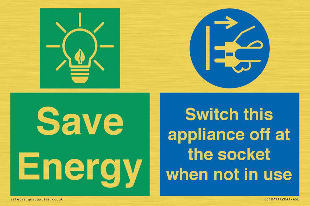 Save Energy, Switch this appliance off at the socket when not in use Sign
