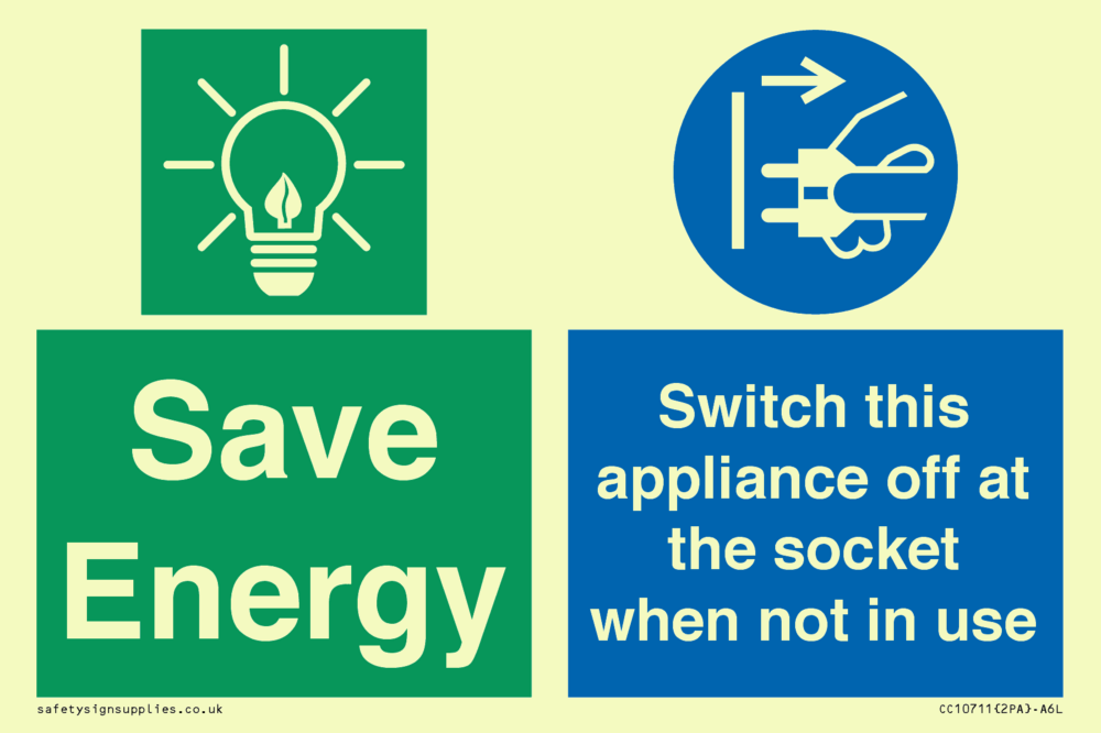 Save Energy, Switch this appliance off at the socket when not in use Sign