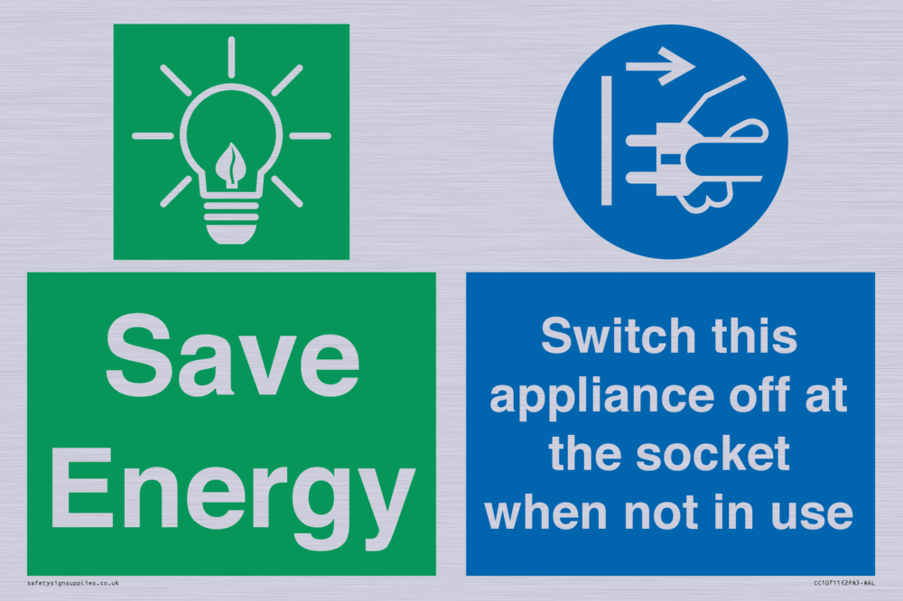 Save Energy, Switch this appliance off at the socket when not in use Sign