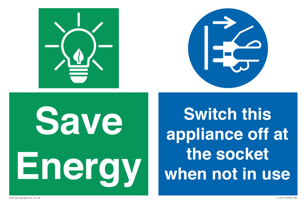 Save Energy, Switch this appliance off at the socket when not in use Sign