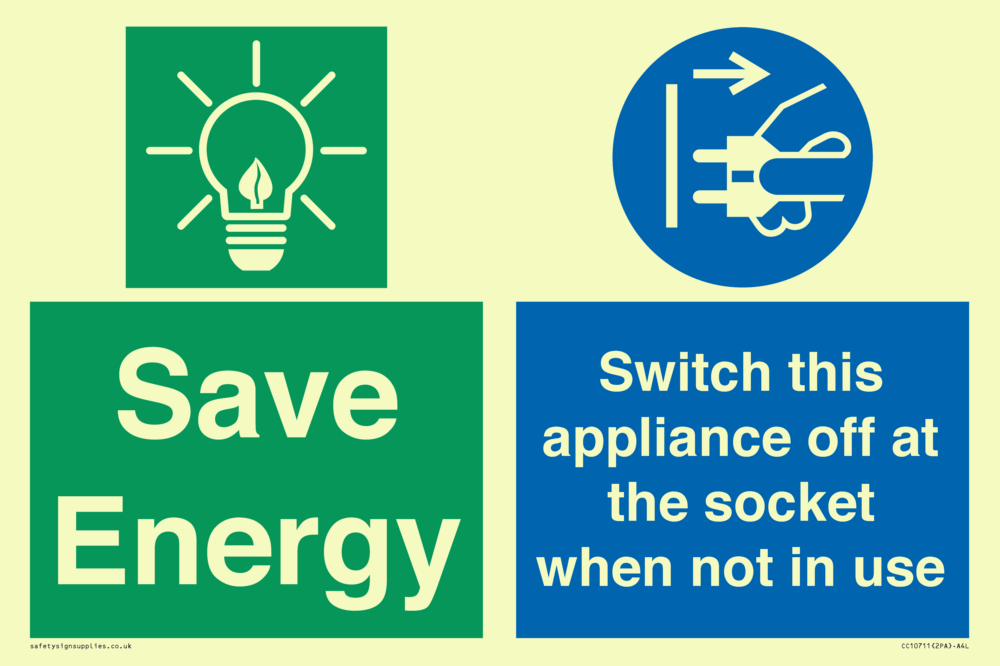 Save Energy, Switch this appliance off at the socket when not in use Sign