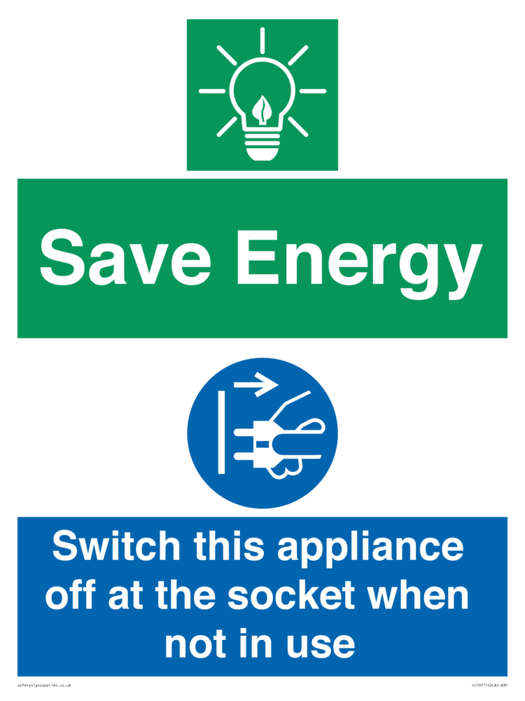 Save Energy, Switch this appliance off at the socket when not in use Sign