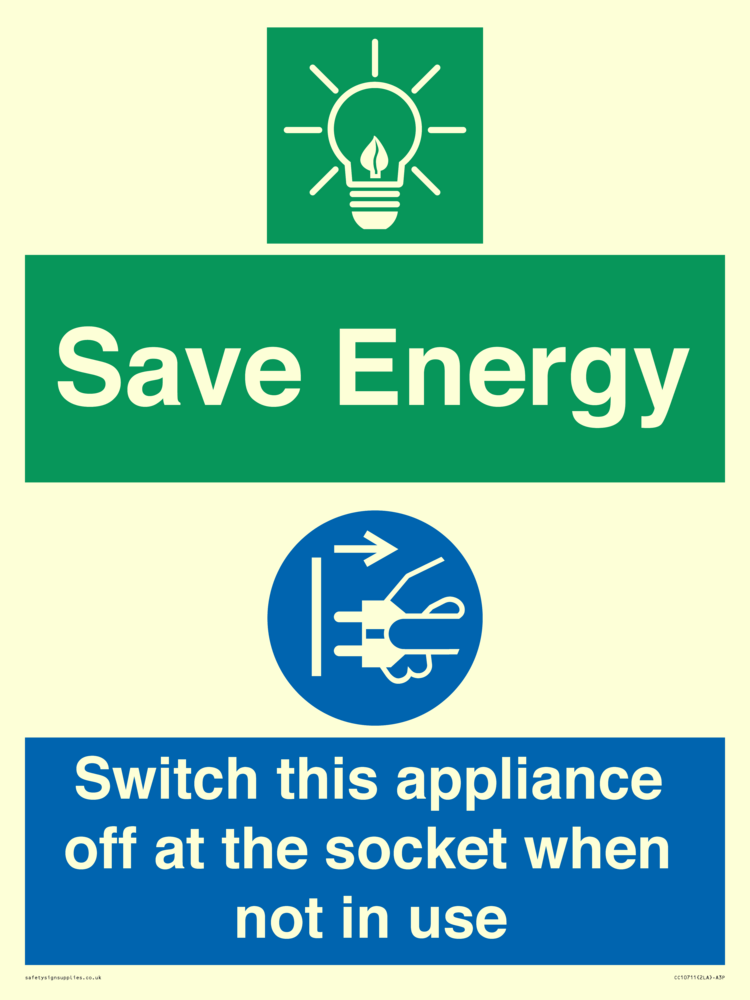 Save Energy, Switch this appliance off at the socket when not in use Sign