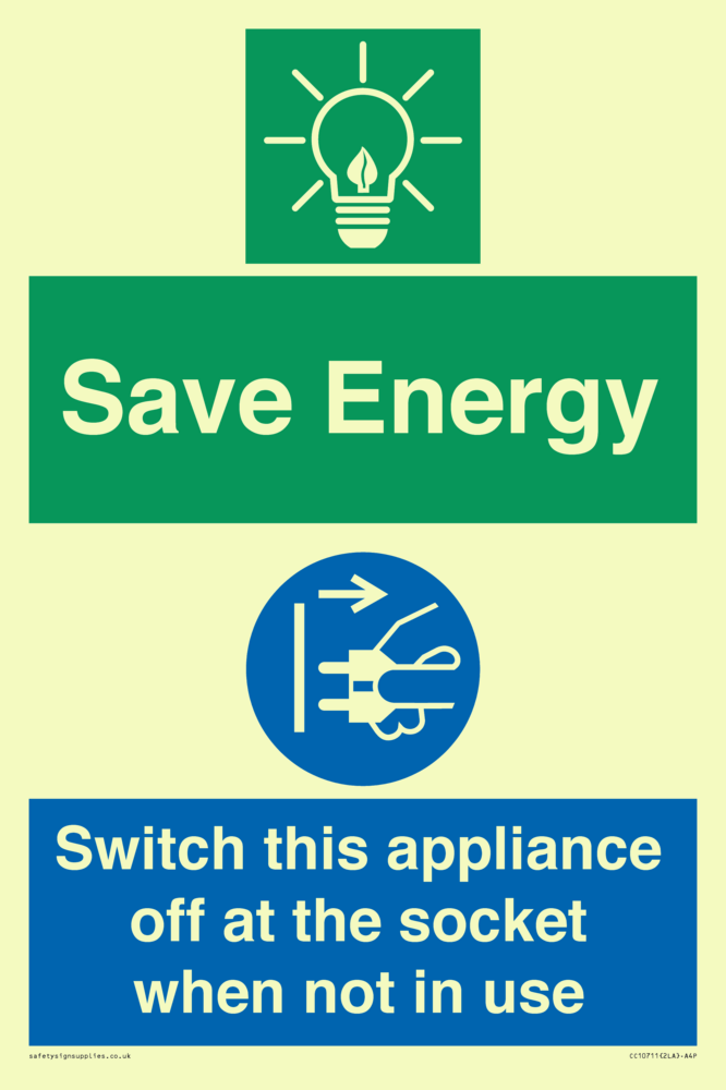 Save Energy, Switch this appliance off at the socket when not in use Sign