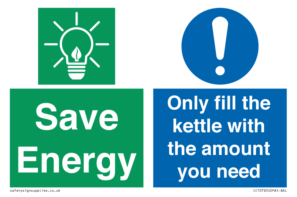 Save Energy - Only fill the kettle with the amount you need Sign
