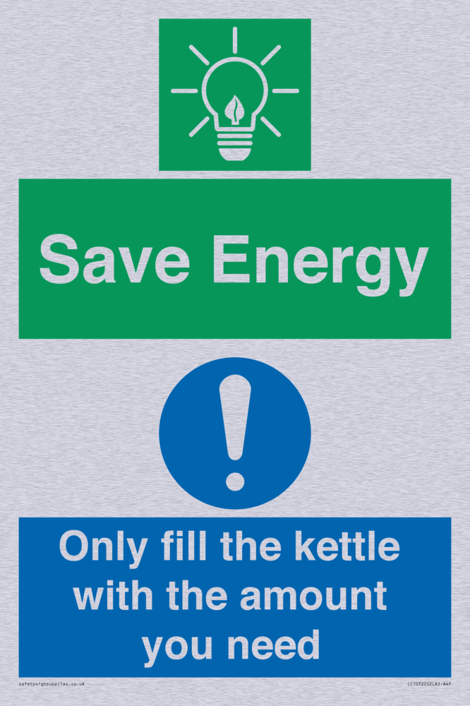 Save Energy - Only fill the kettle with the amount you need Sign
