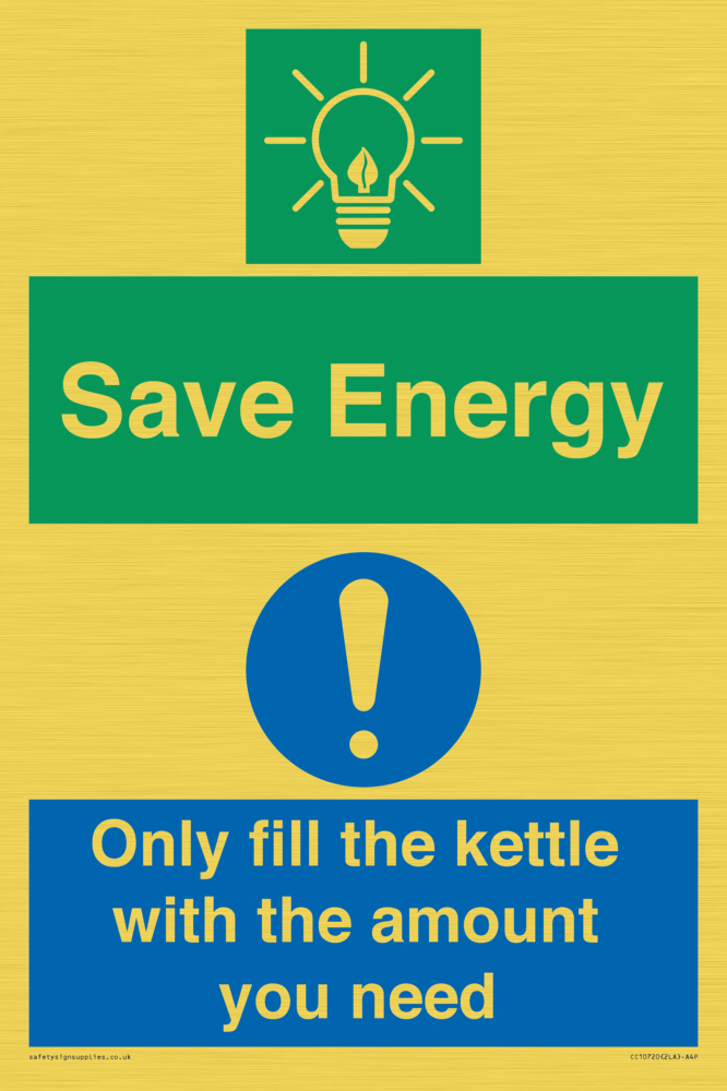 Save Energy - Only fill the kettle with the amount you need Sign