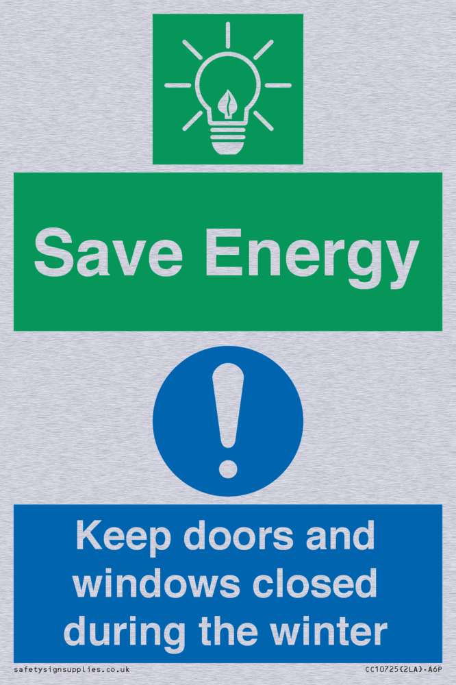 Save Energy - Keep doors and windows closed during the winter Sign