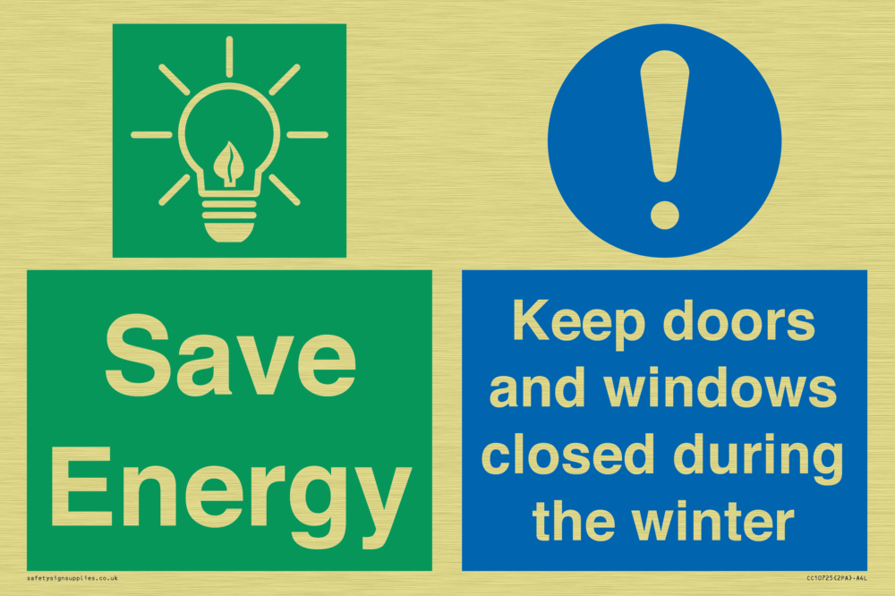Save Energy - Keep doors and windows closed during the winter Sign