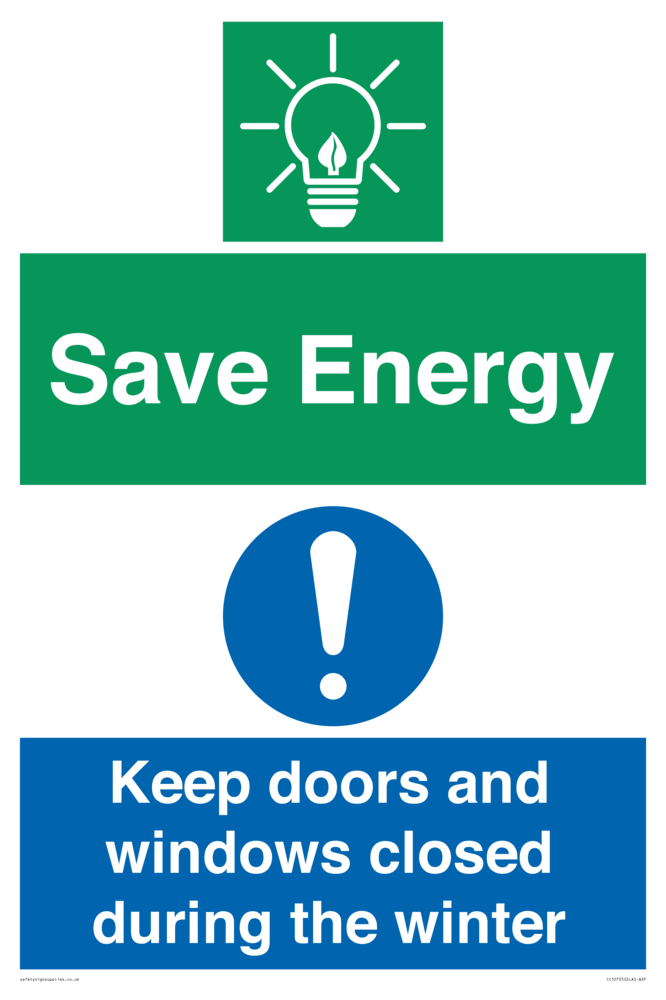 Save Energy - Keep doors and windows closed during the winter Sign