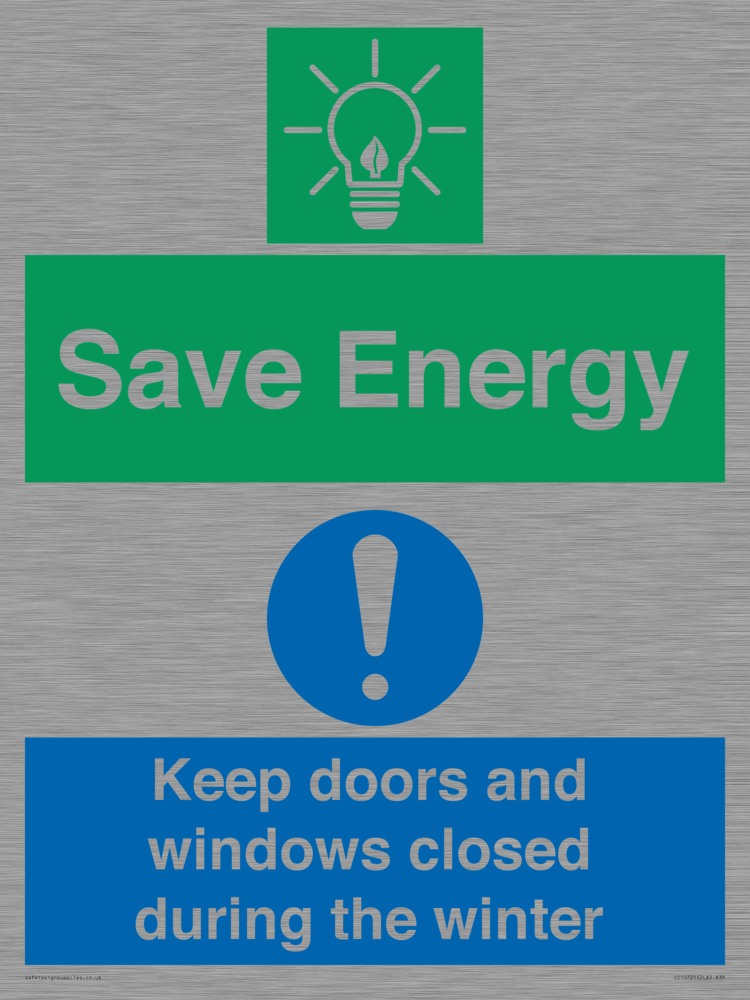 Save Energy - Keep doors and windows closed during the winter Sign