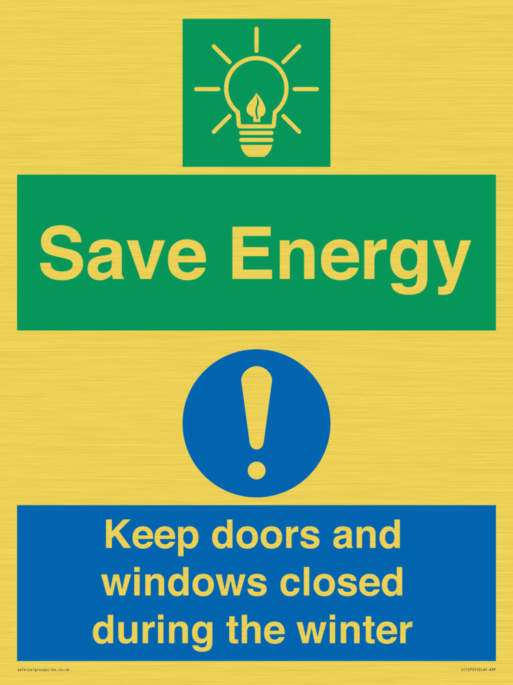 Save Energy - Keep doors and windows closed during the winter Sign
