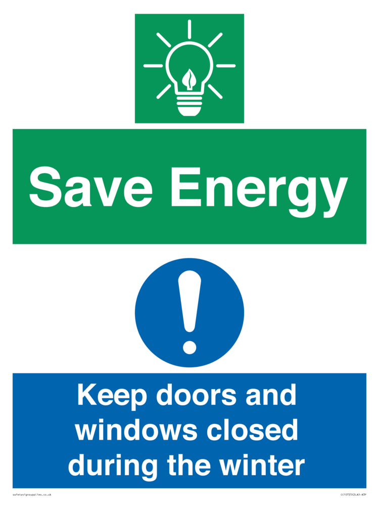 Save Energy - Keep doors and windows closed during the winter Sign