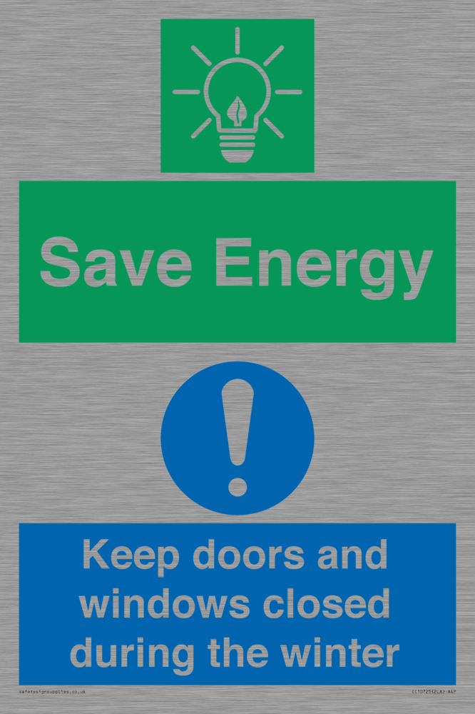 Save Energy - Keep doors and windows closed during the winter Sign