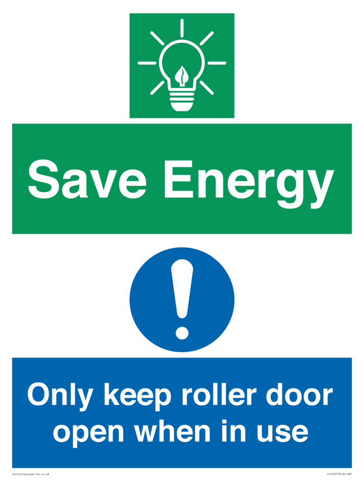 Save Energy - Only keep roller door open when in use Sign