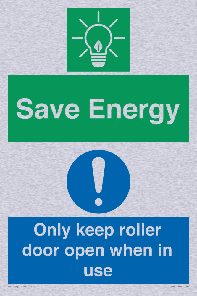 Save Energy - Only keep roller door open when in use Sign