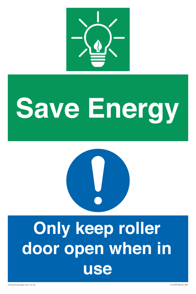 Save Energy - Only keep roller door open when in use Sign