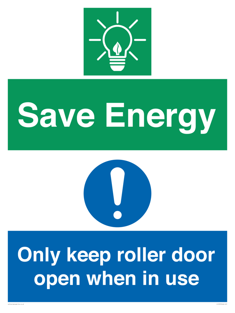 Save Energy - Only keep roller door open when in use Sign