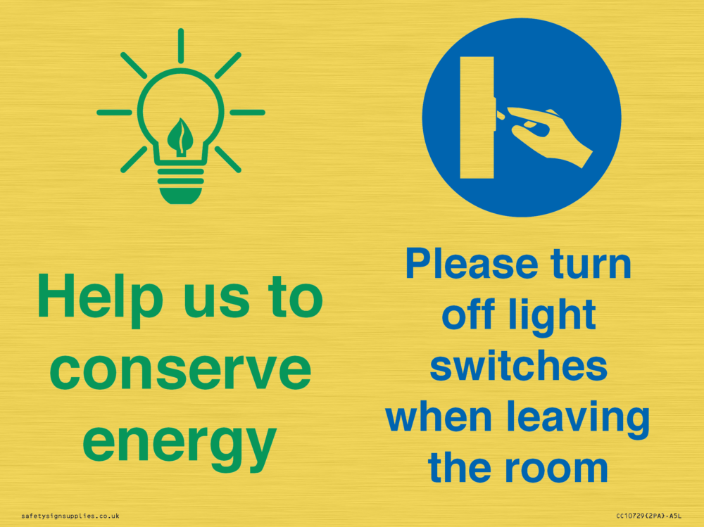Help us to conserve energy - Turn off light switches when leaving the room Sign