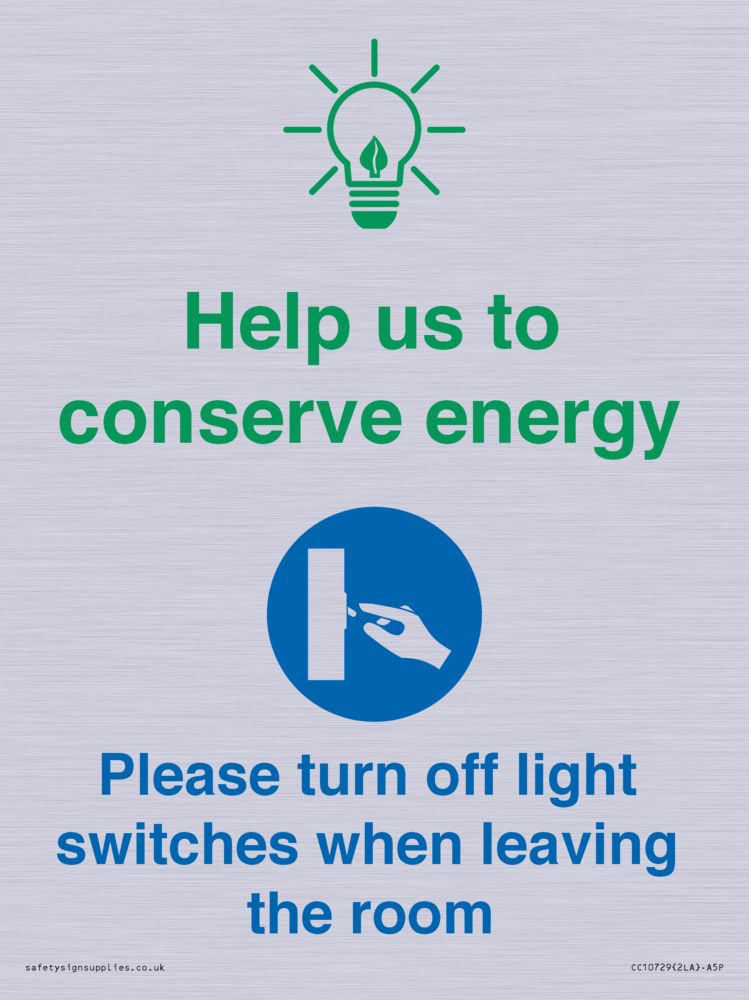 Help us to conserve energy - Turn off light switches when leaving the room Sign