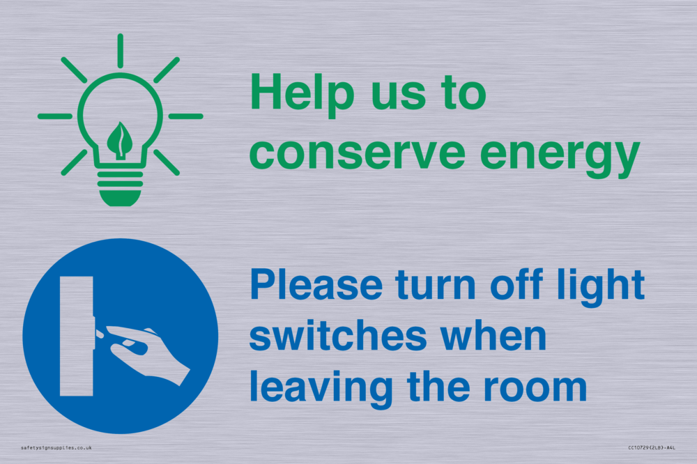Help us to conserve energy - Turn off light switches when leaving the room Sign