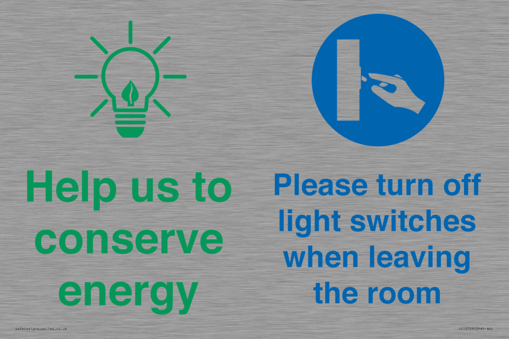 Help us to conserve energy - Turn off light switches when leaving the room Sign