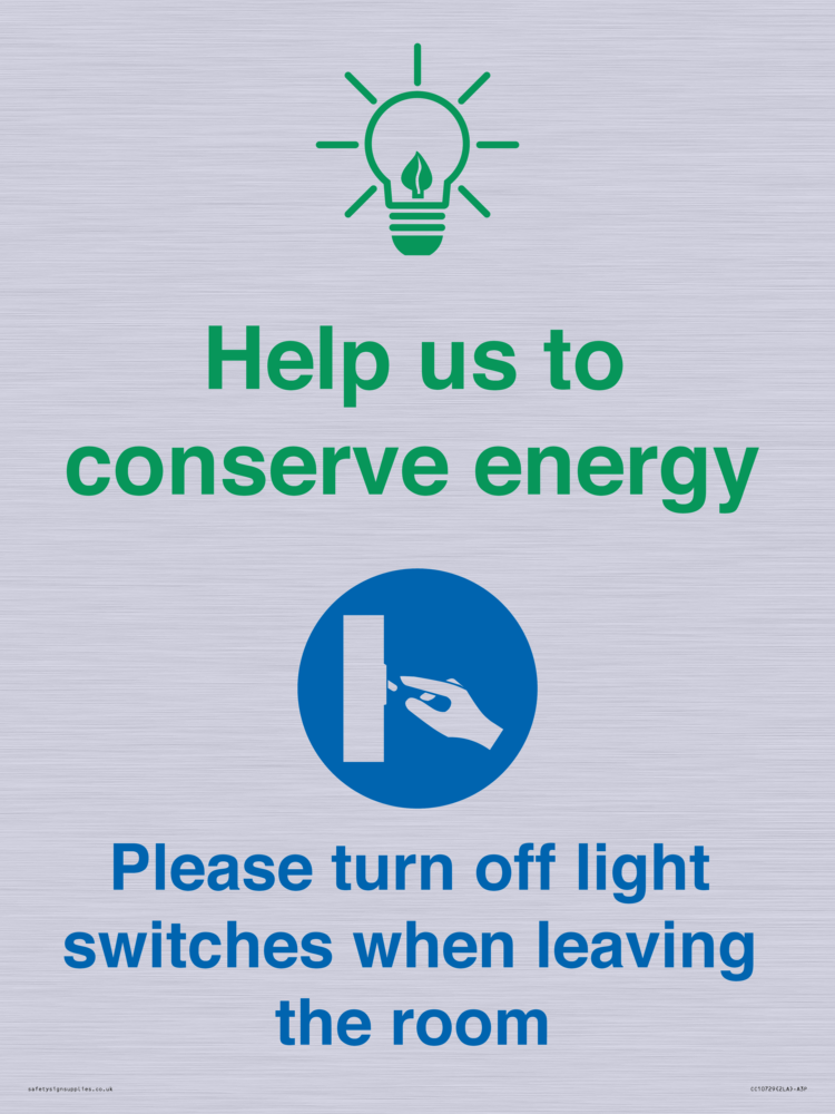 Help us to conserve energy - Turn off light switches when leaving the room Sign