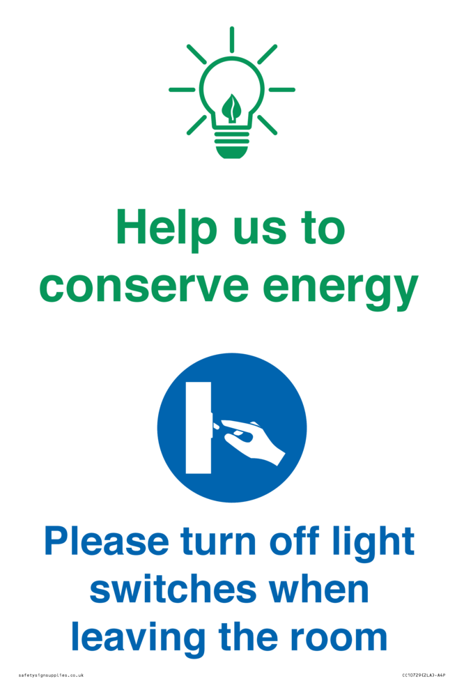 Help us to conserve energy - Turn off light switches when leaving the room