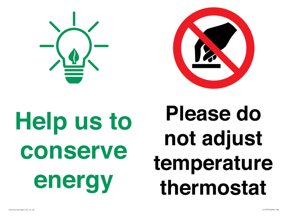 Help us to conserve energy - Please do not adjust temperature thermostat Sign