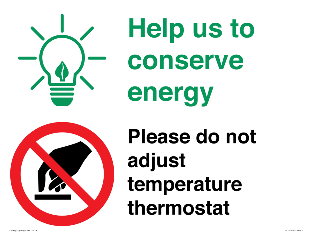 Help us to conserve energy - Please do not adjust temperature thermostat Sign
