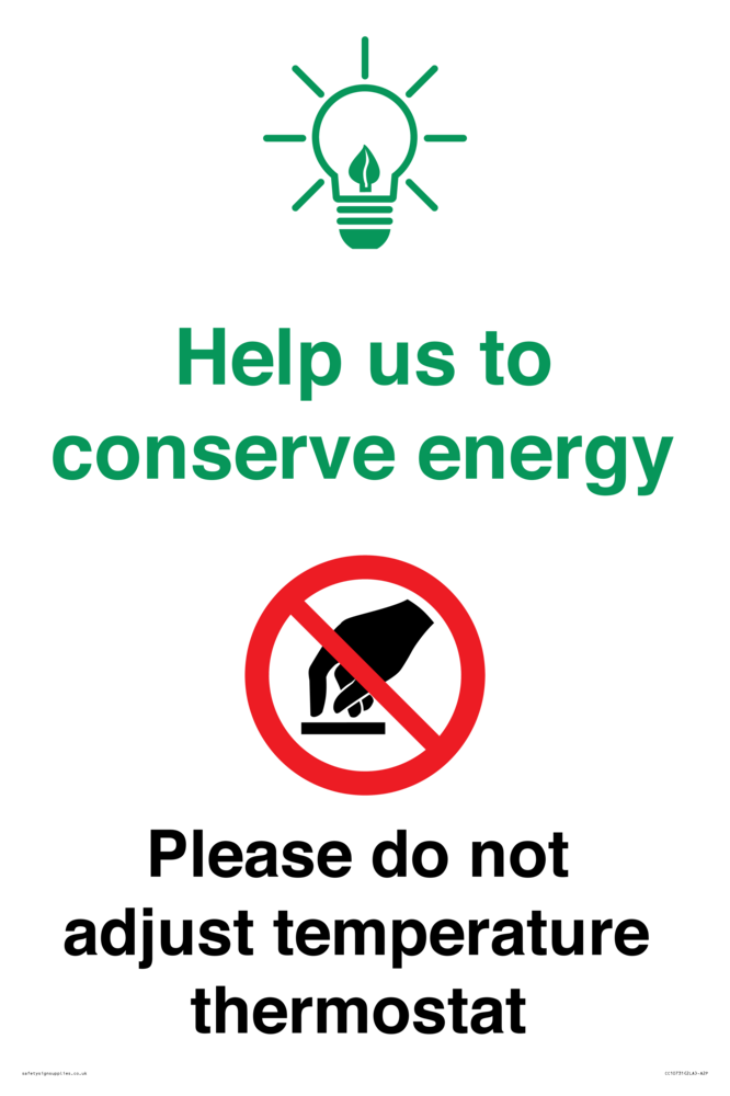 Help us to conserve energy - Please do not adjust temperature thermostat Sign