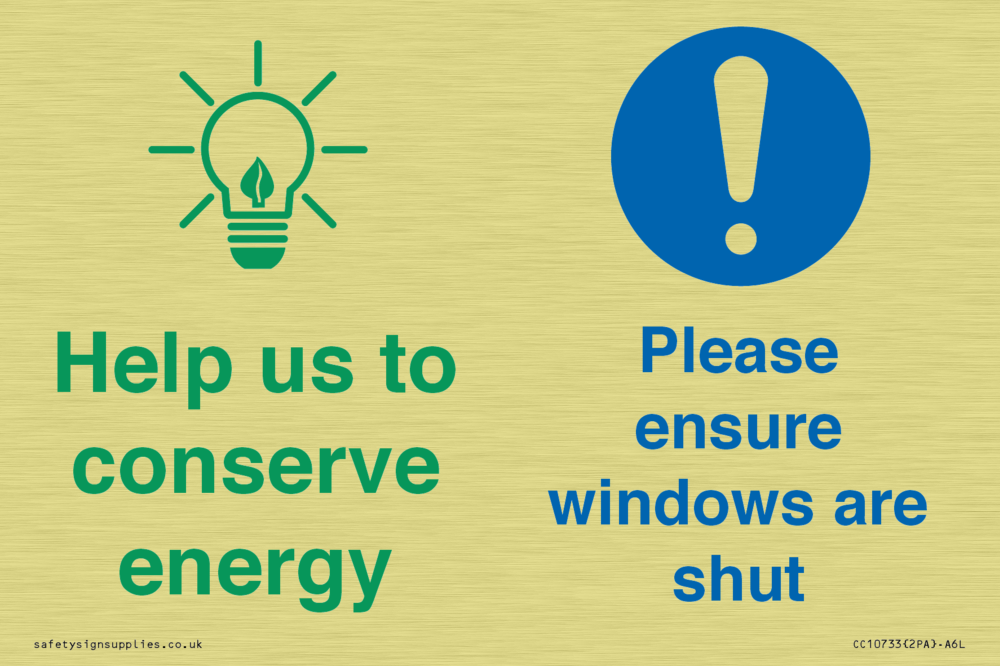 Help us to conserve energy - Ensure windows are shut Sign