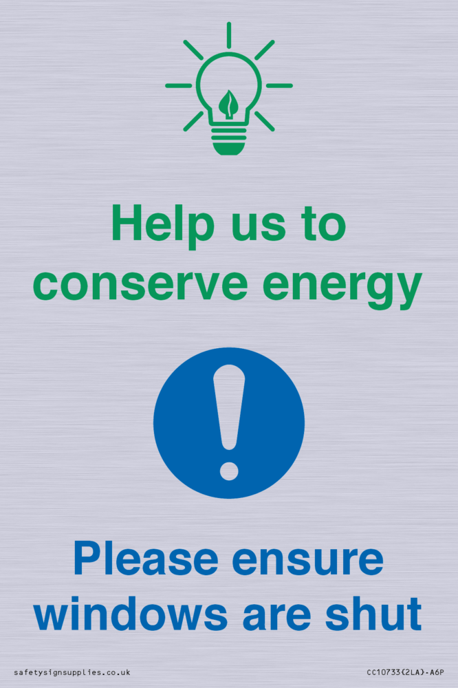 Help us to conserve energy - Ensure windows are shut Sign