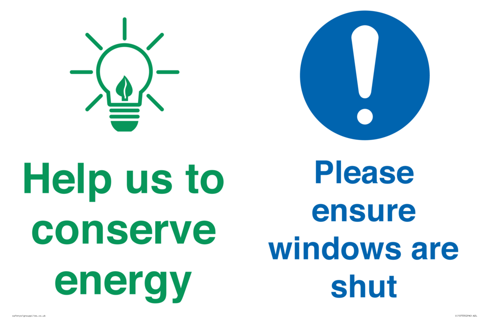 Help us to conserve energy - Ensure windows are shut