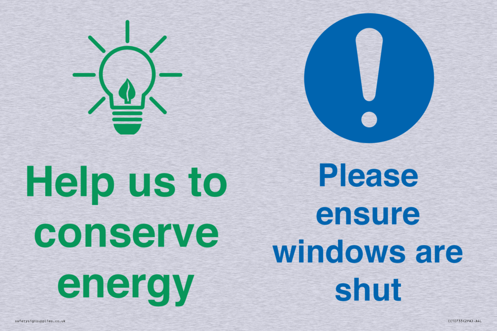 Help us to conserve energy - Ensure windows are shut Sign