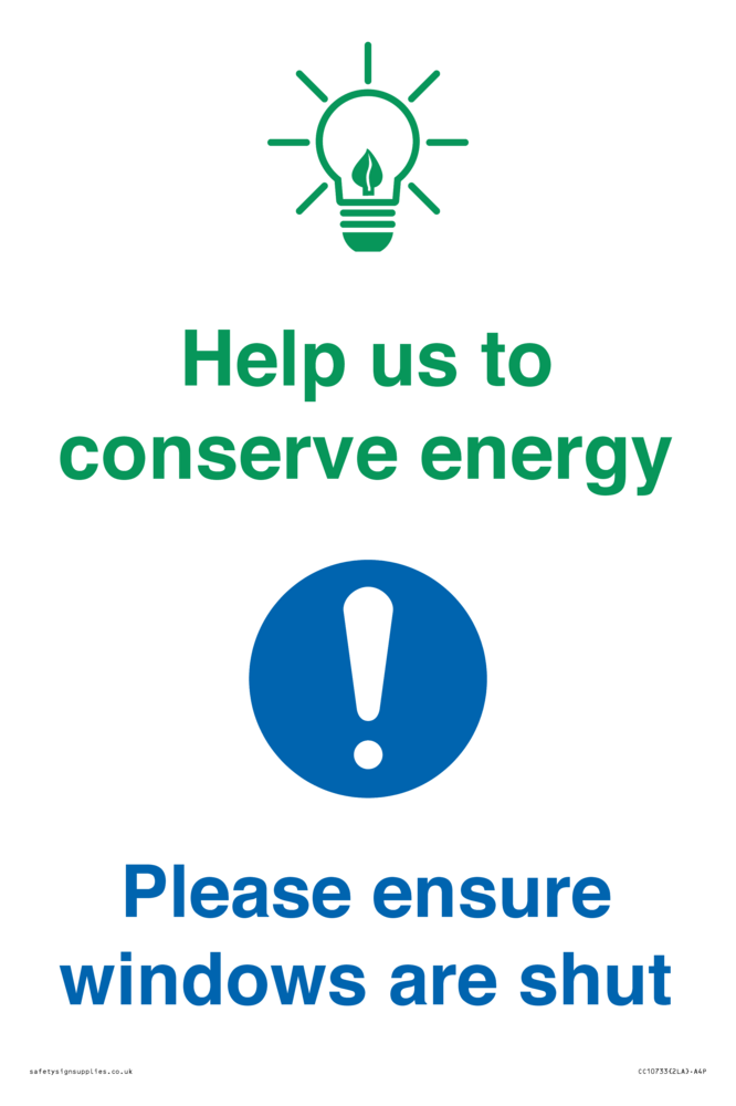 Help us to conserve energy - Ensure windows are shut Sign